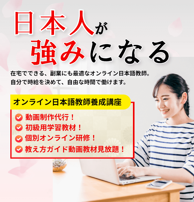 練習問題付きの文法教材、会話教材など、約100レッスン以上のオンライン教材をお受け取りいただけます。